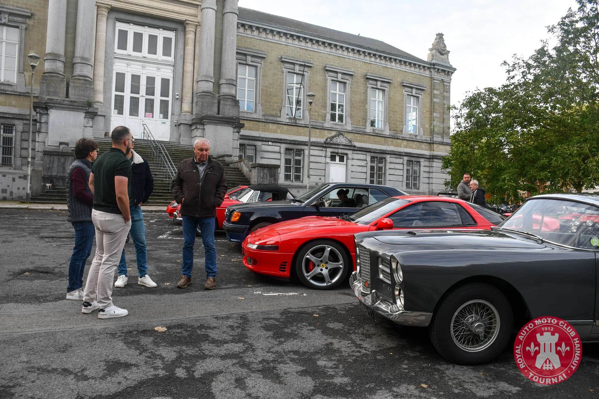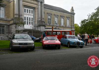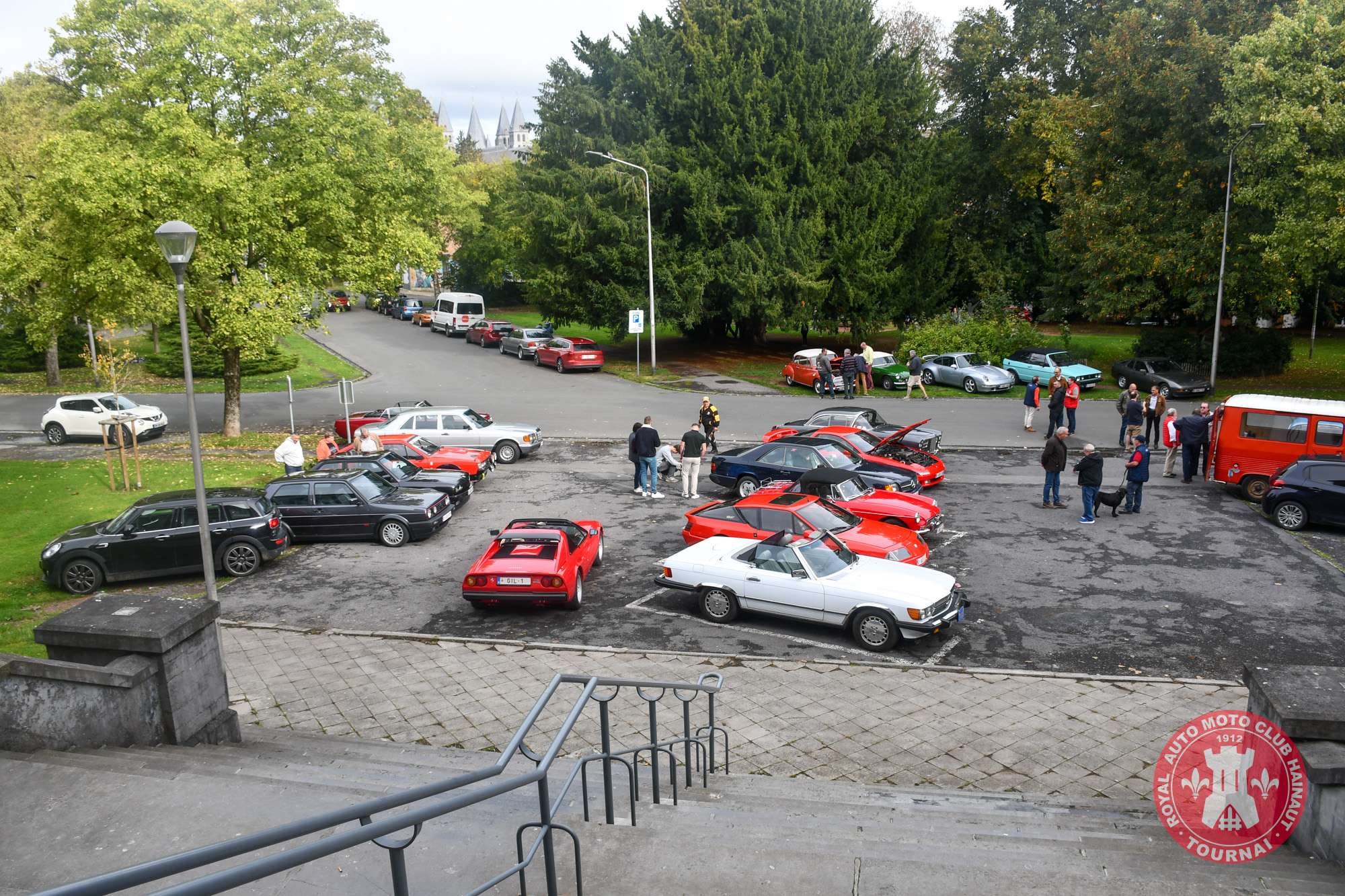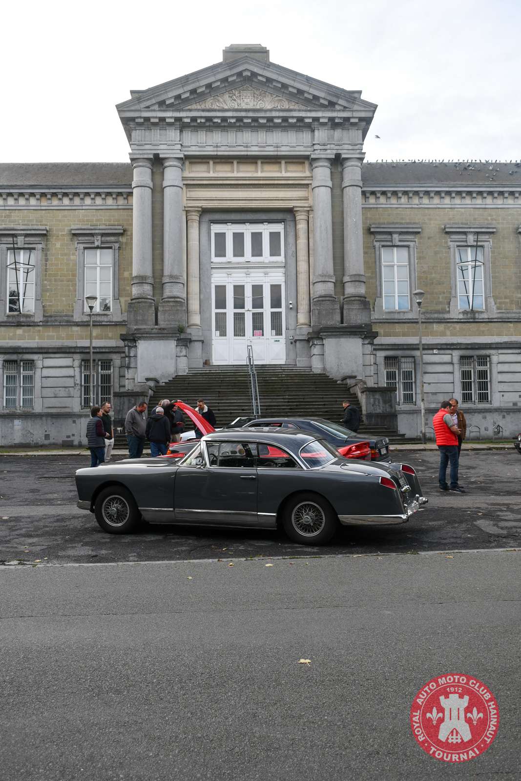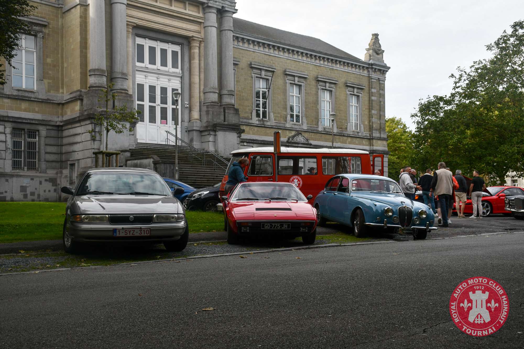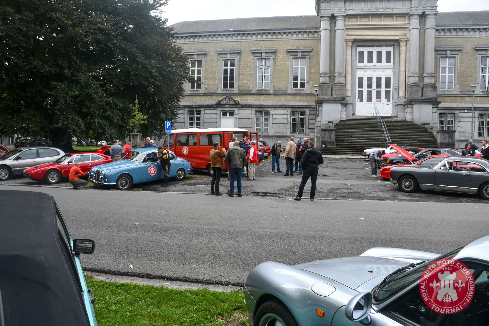 La cour de l’hôtel de ville Tournai n’étant pas disponible … Le Club a improvisé son rassemblement sur le parking du Palais de Justice de Tournai … Atypique 😉