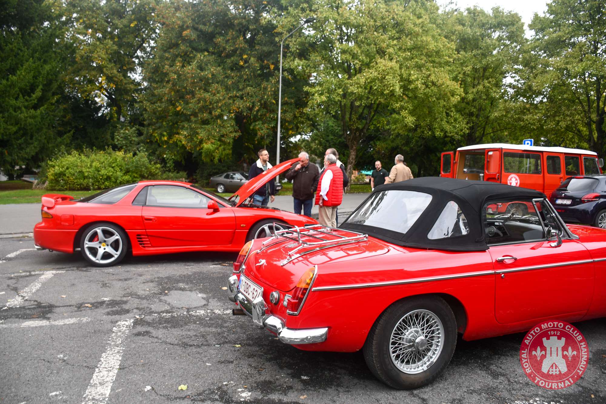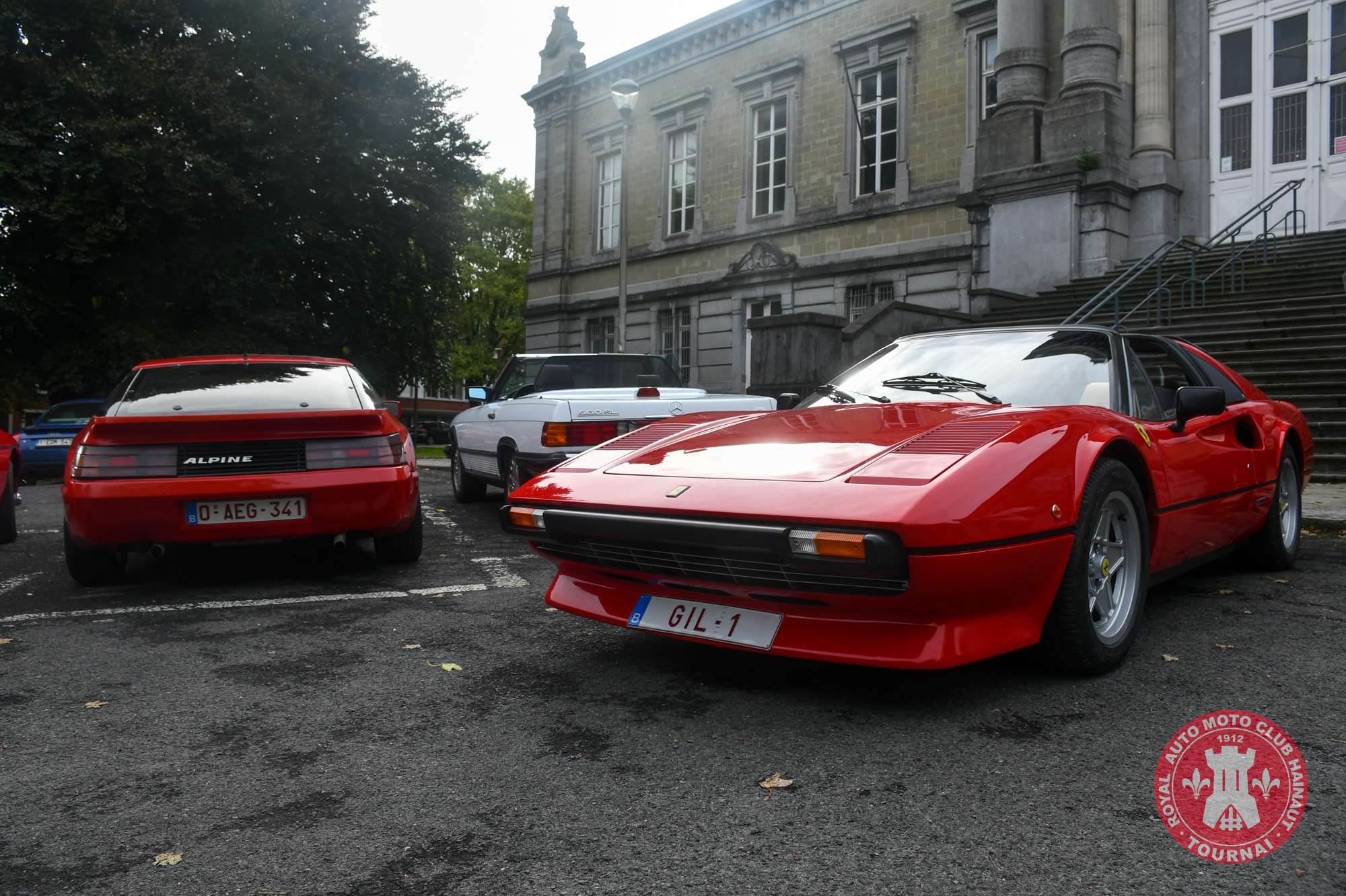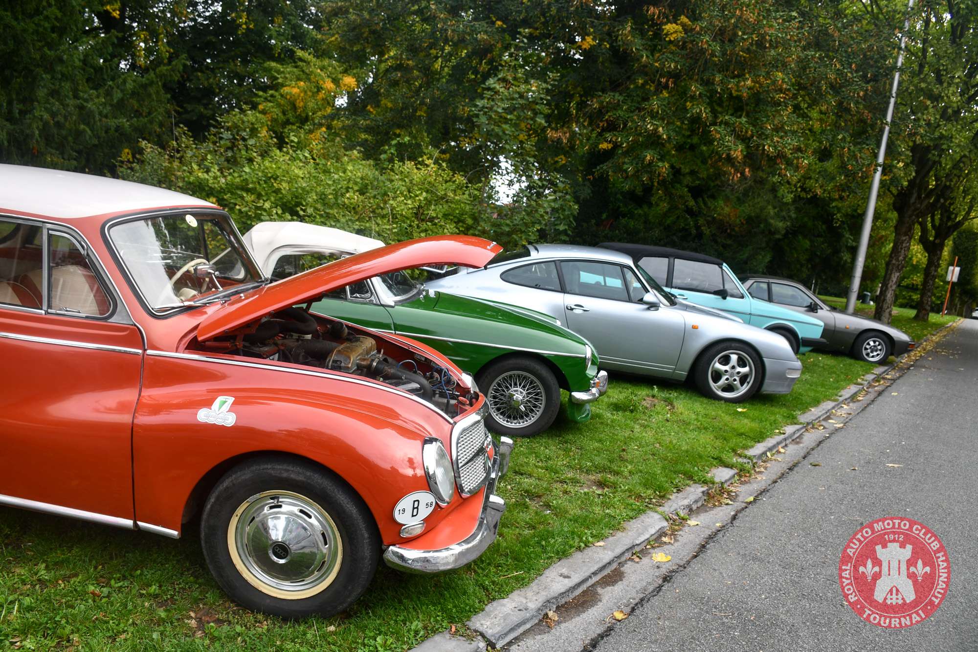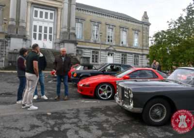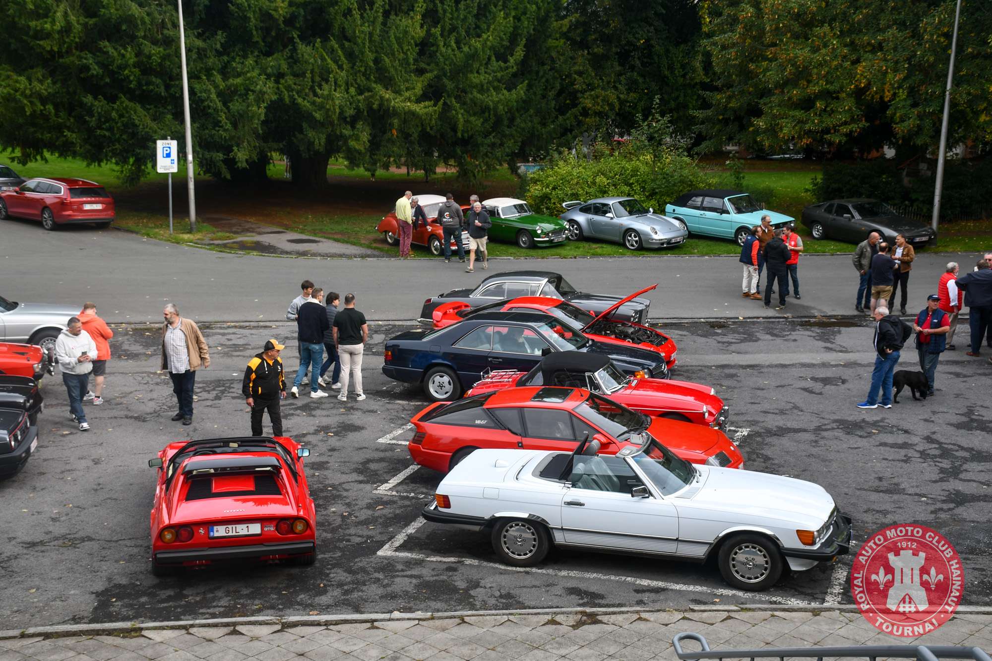 La cour de l’hôtel de ville Tournai n’étant pas disponible … Le Club a improvisé son rassemblement sur le parking du Palais de Justice de Tournai … Atypique 😉