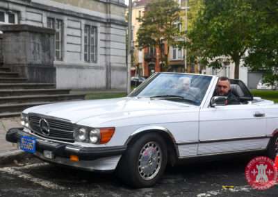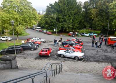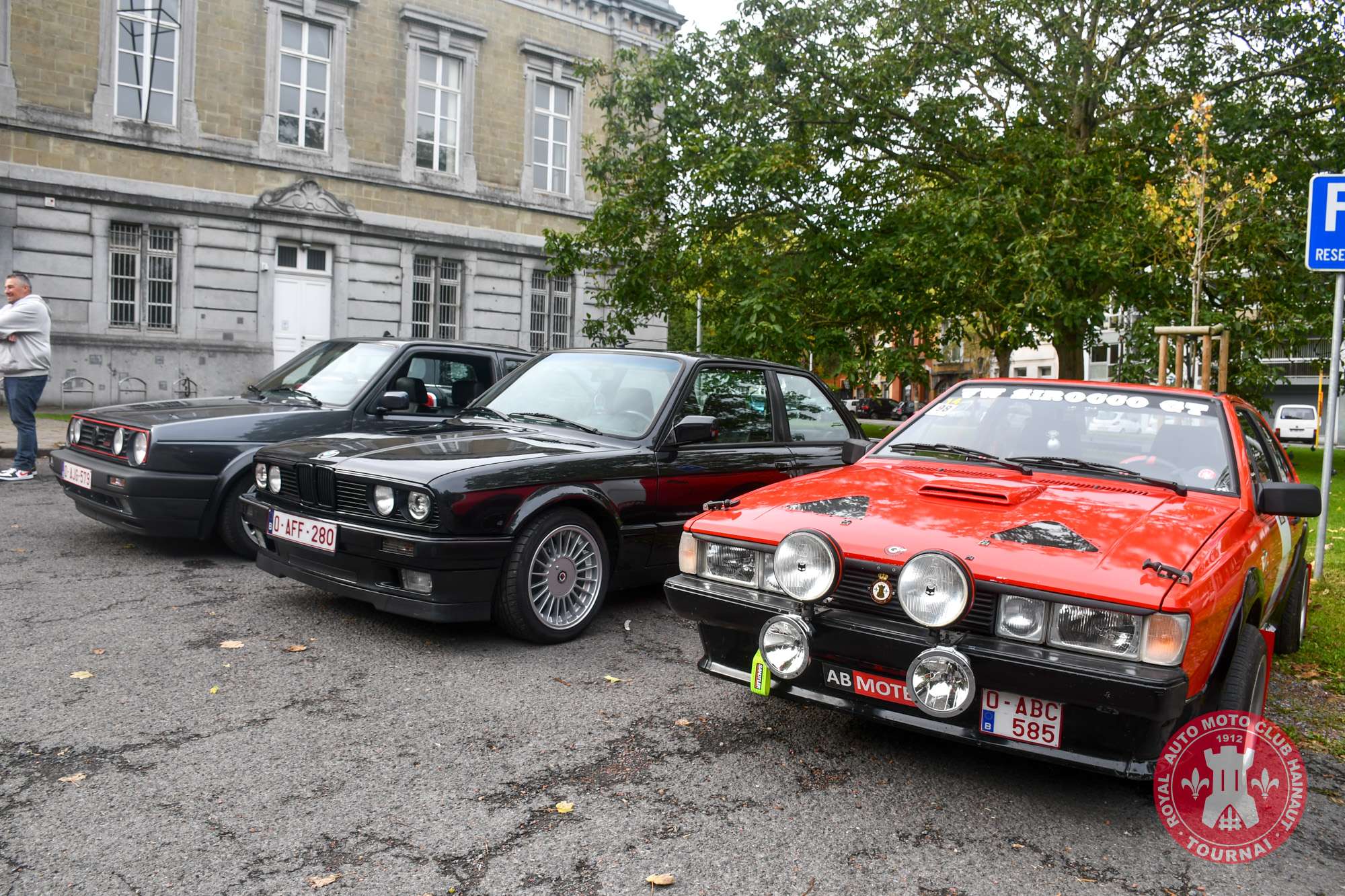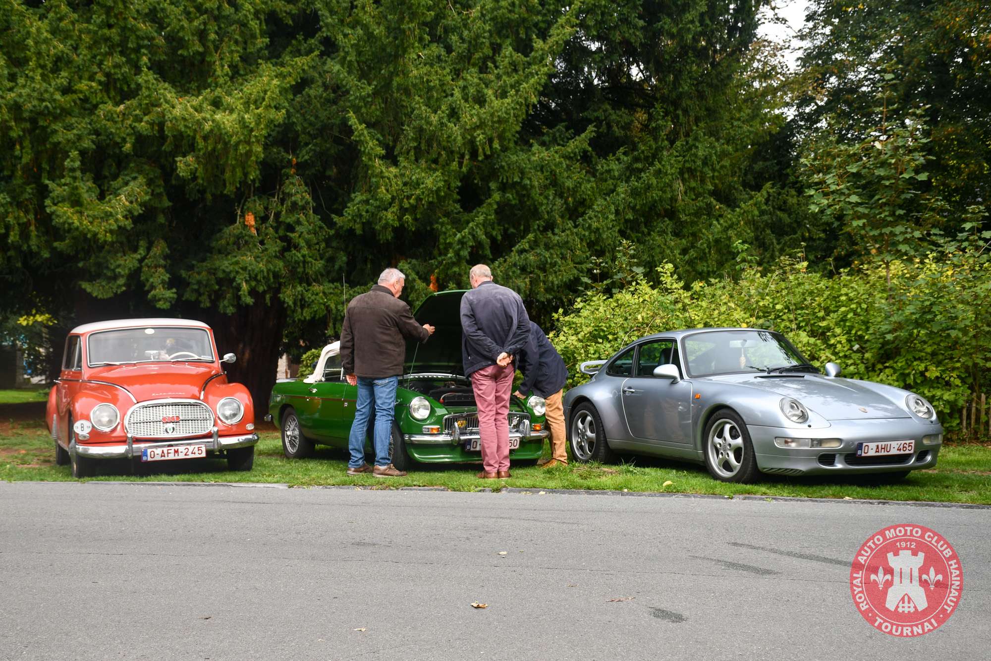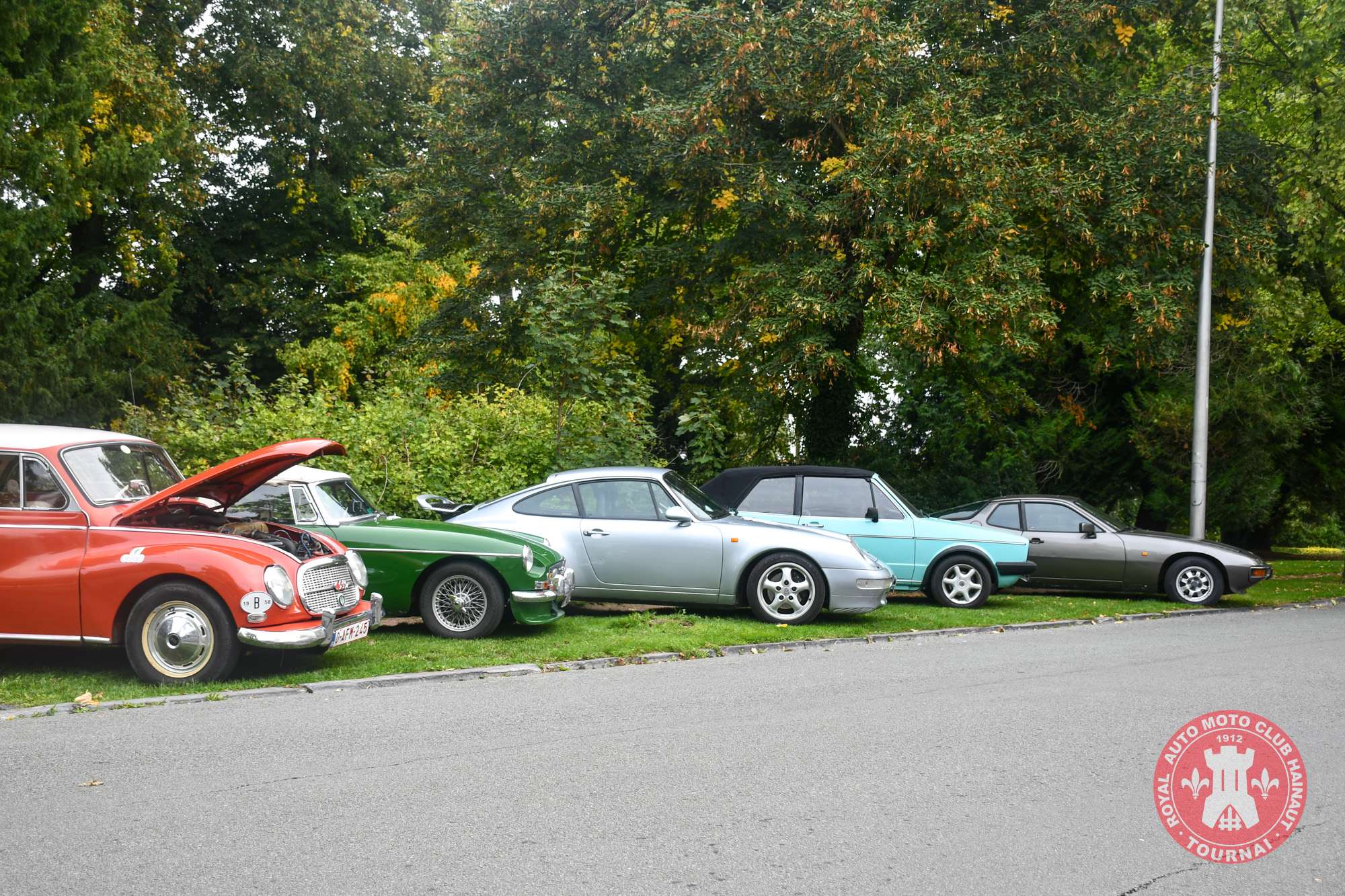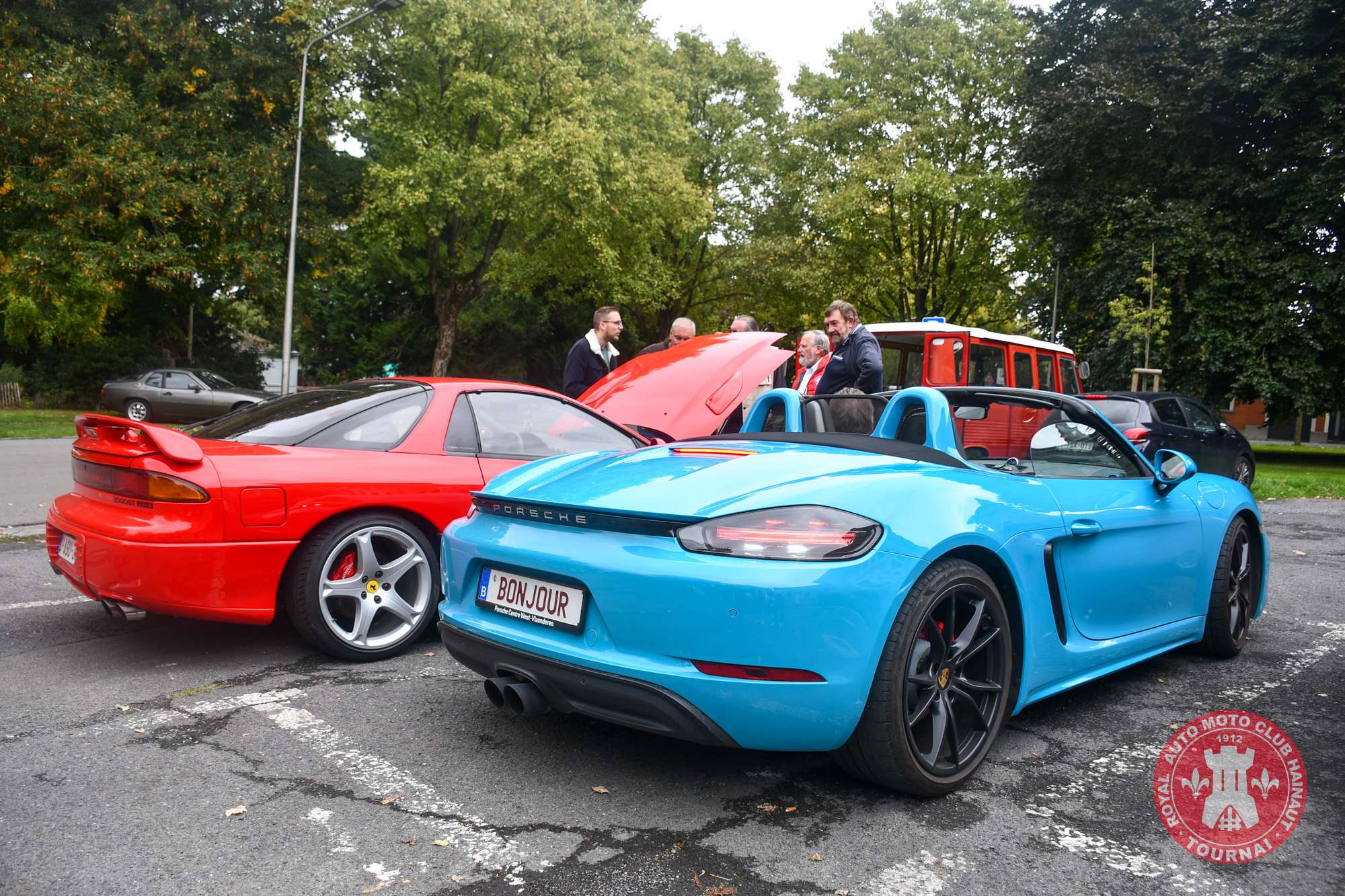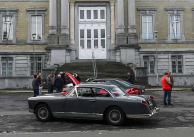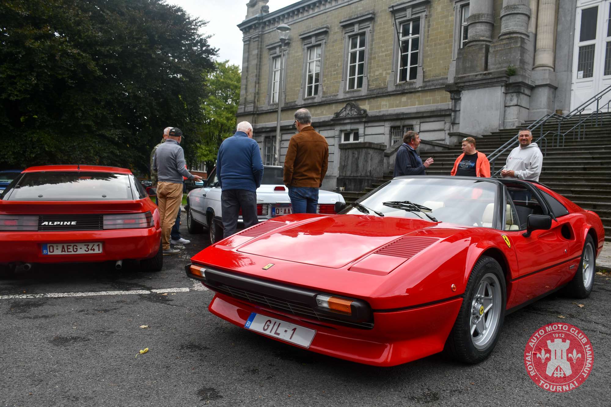 La cour de l’hôtel de ville Tournai n’étant pas disponible … Le Club a improvisé son rassemblement sur le parking du Palais de Justice de Tournai … Atypique 😉